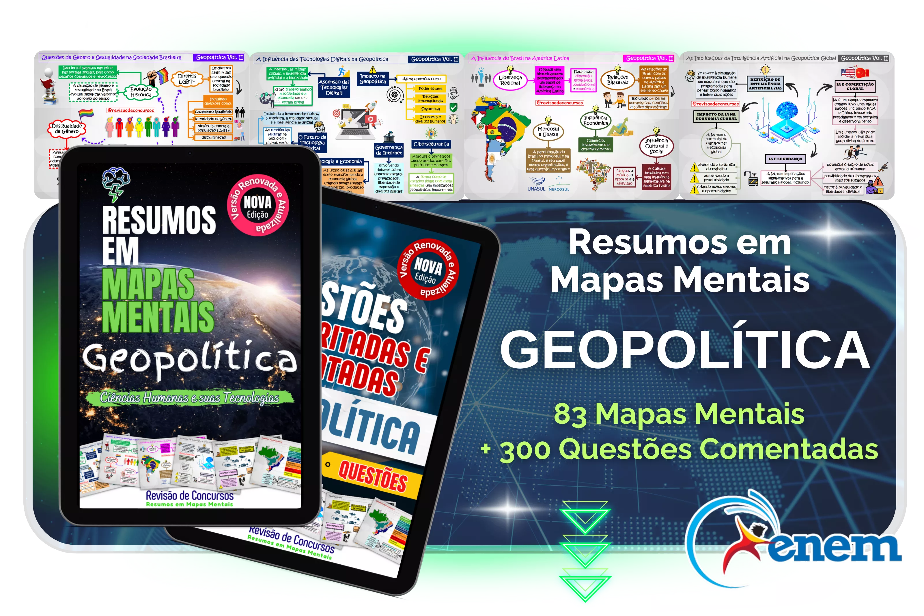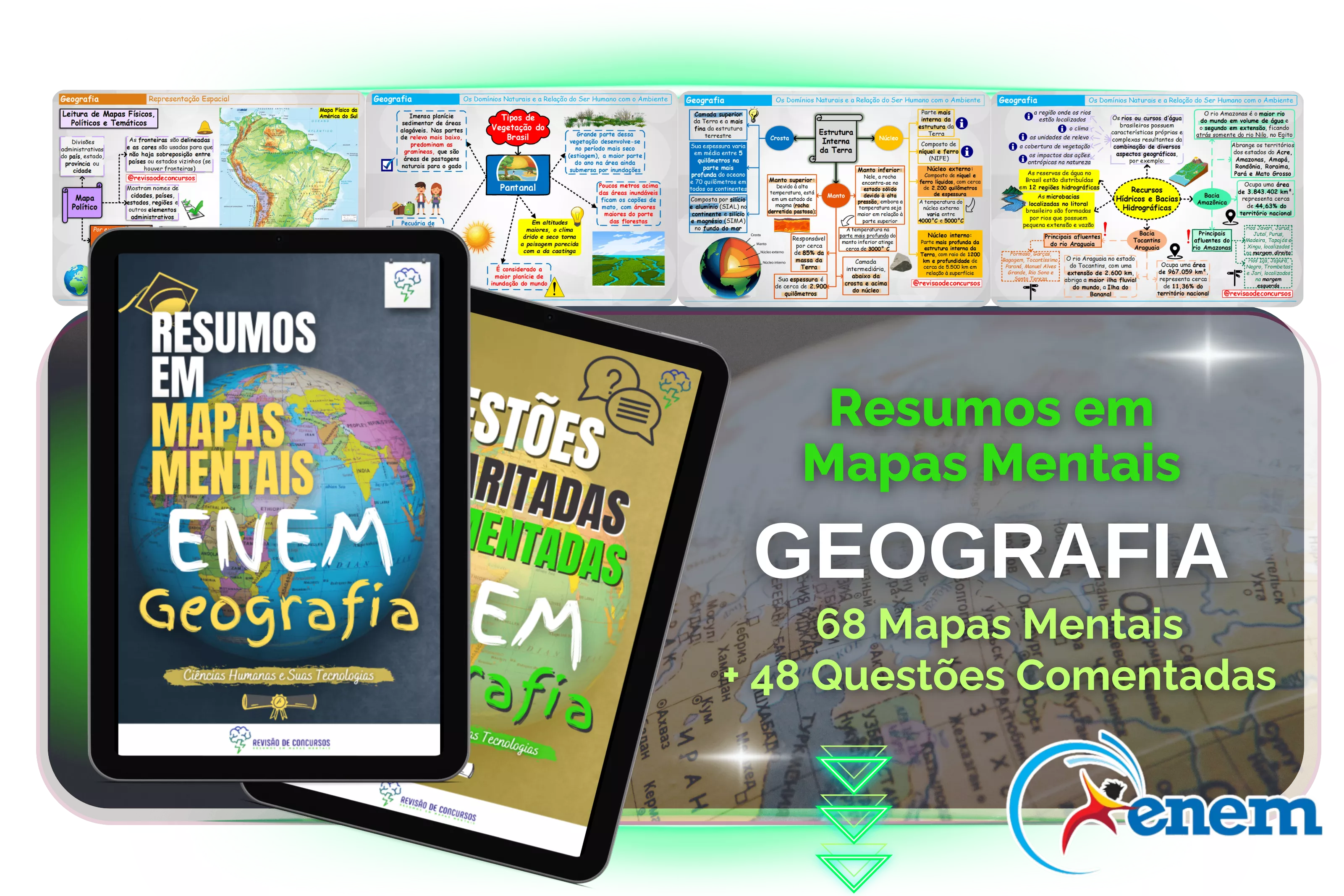 Cuidadosamente elaborados para ajudar você a revisar de forma eficiente e focada no conteúdo exigido na sua prova de Concurso Públicos, Vestibulares e Exame Nacional do Ensino Médio (ENEM).
