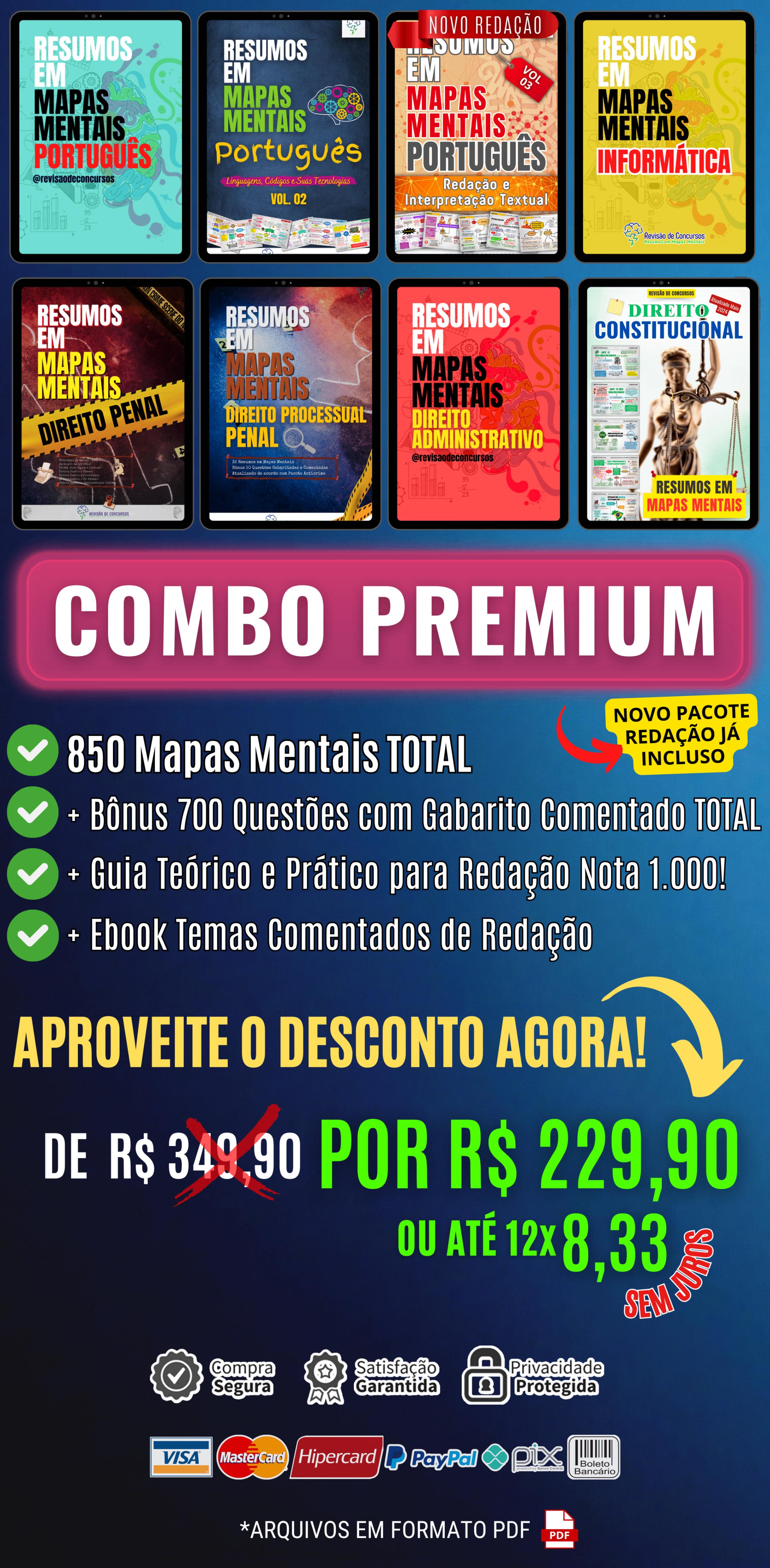 Eles oferecem uma abordagem inovadora e poderosa para melhorar o desempenho dos estudantes em Vestibulares, Enem e Concursos Públicos, combinando os pontos fortes dos infográficos, mapas mentais e resumos em uma única ferramenta de estudo.