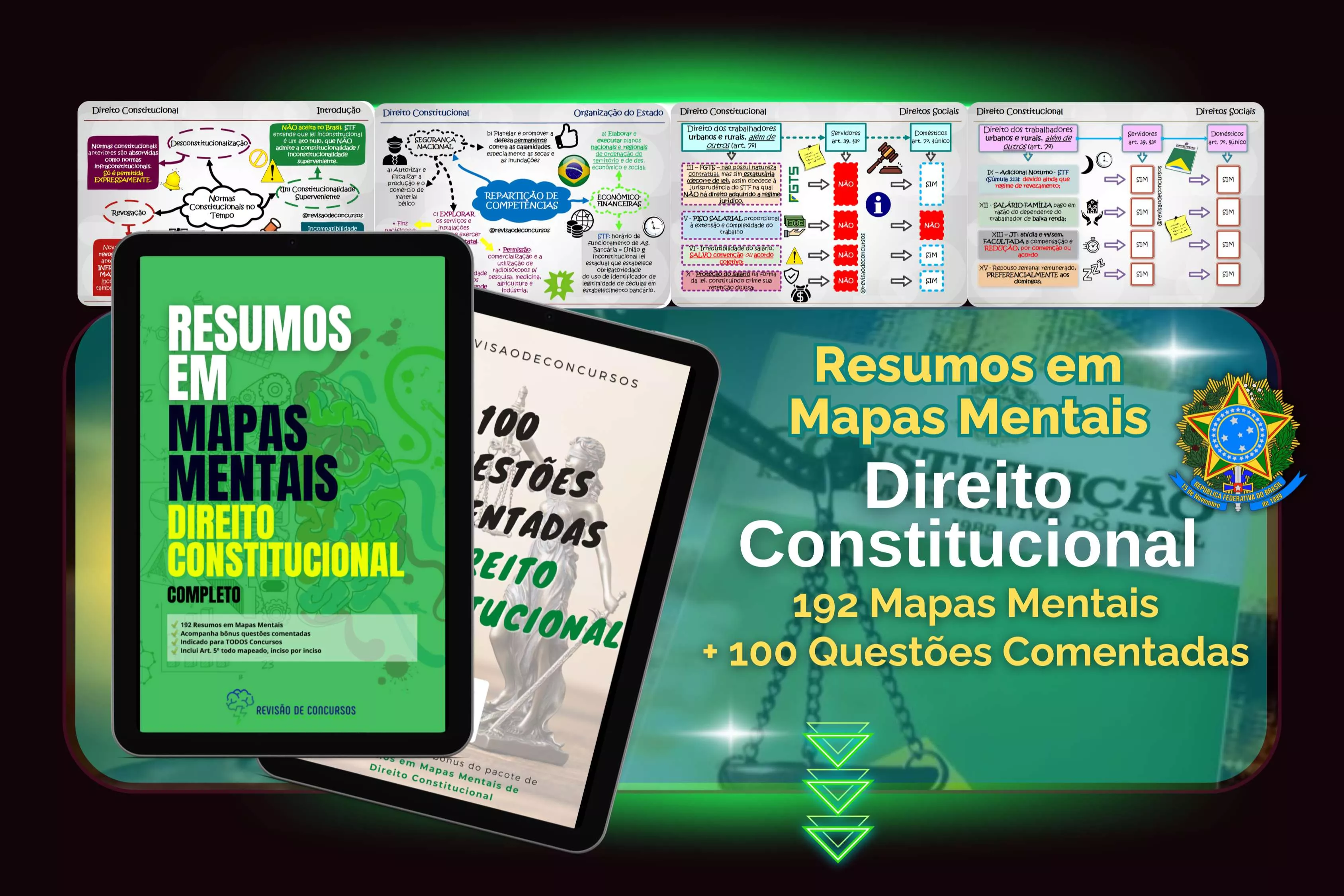 Revise o conteúdo de DIREITO CONSTITUCIONAL tendo todos os conceitos e exemplos em material único e esquematizado, no formato de Resumos em Mapas Mentais.