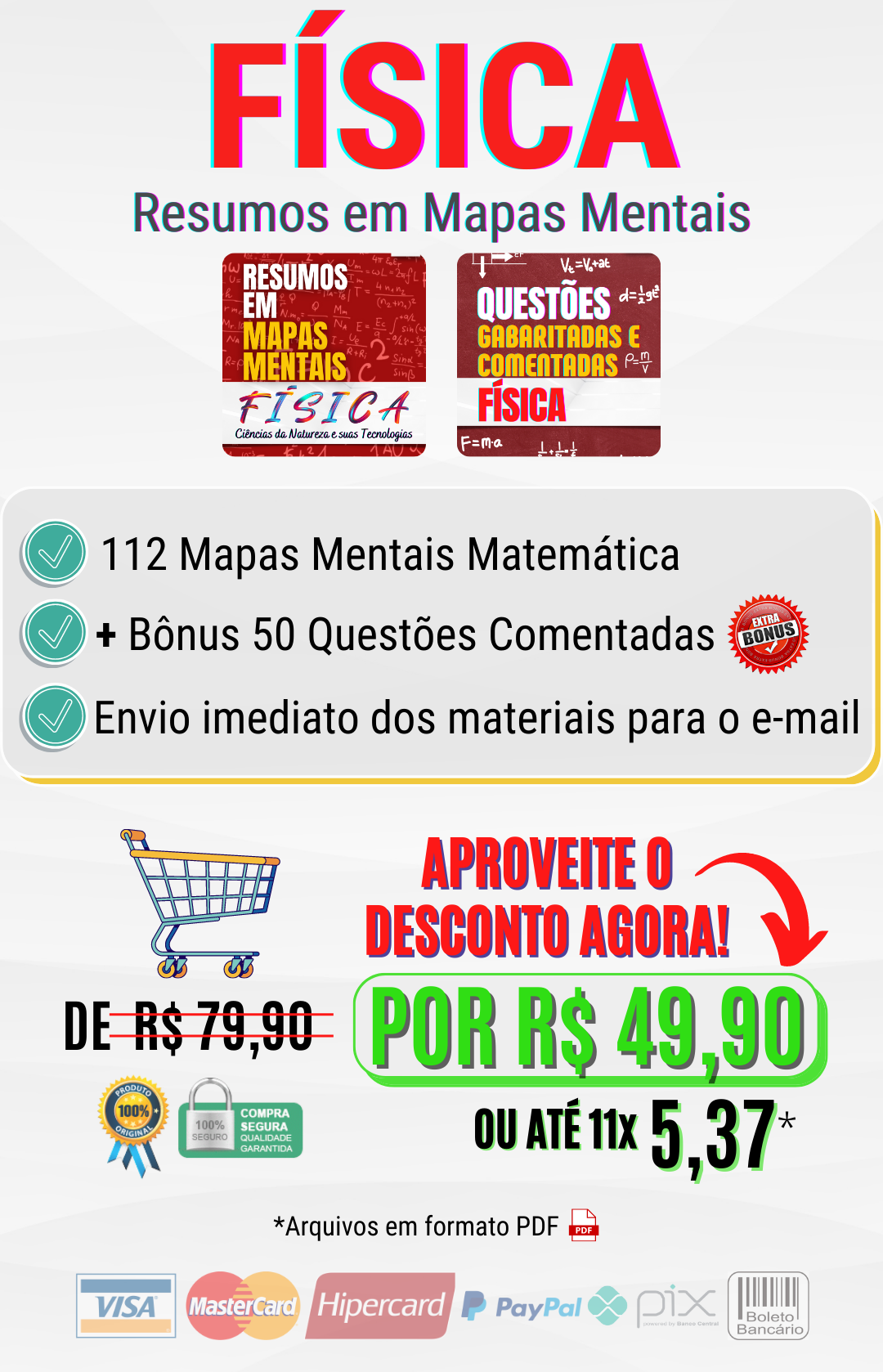 Os materiais são enviados são em formato PDF, enviado para seu e-mail de cadastro logo após a confirmação do pagamento pelo sistema.
