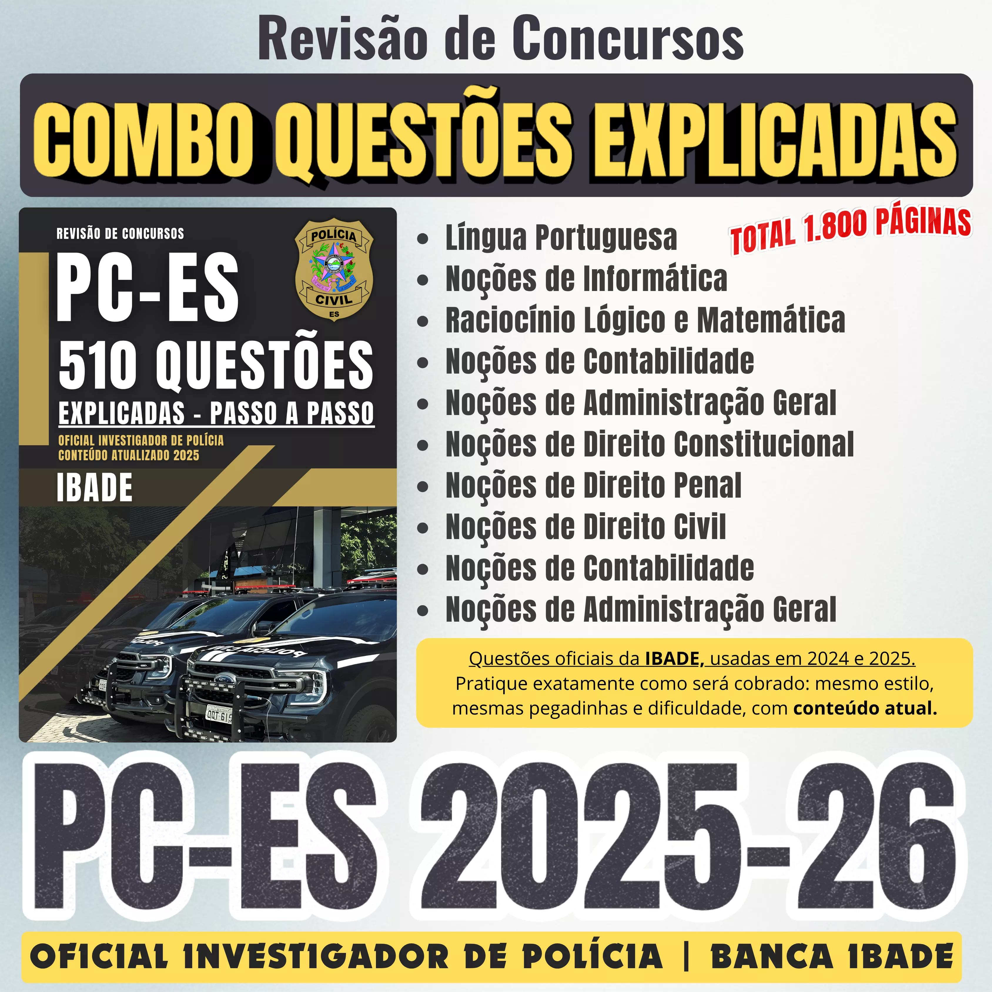 "COMBO QUESTÕES EXPLICADAS PC-ES" e saia na frente!