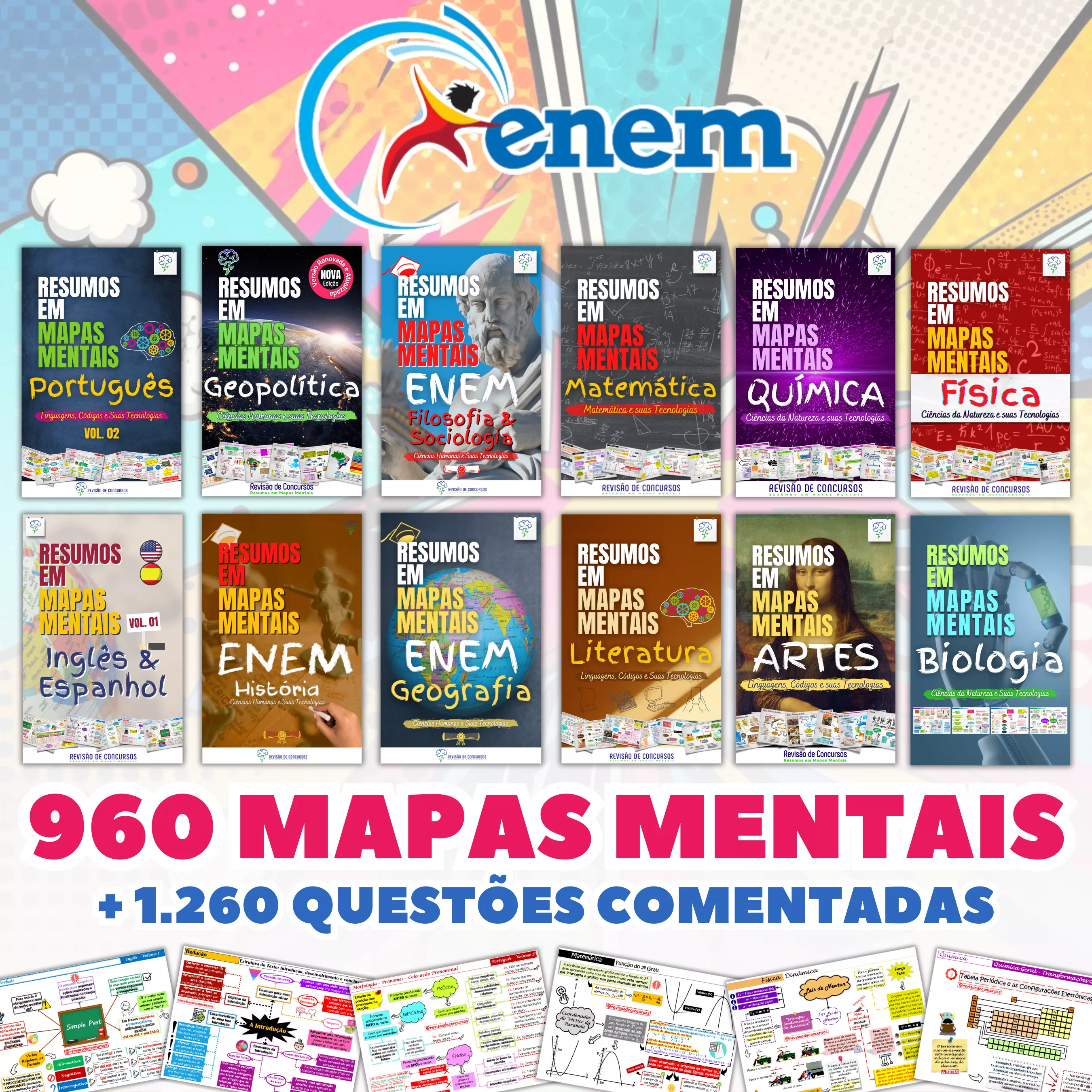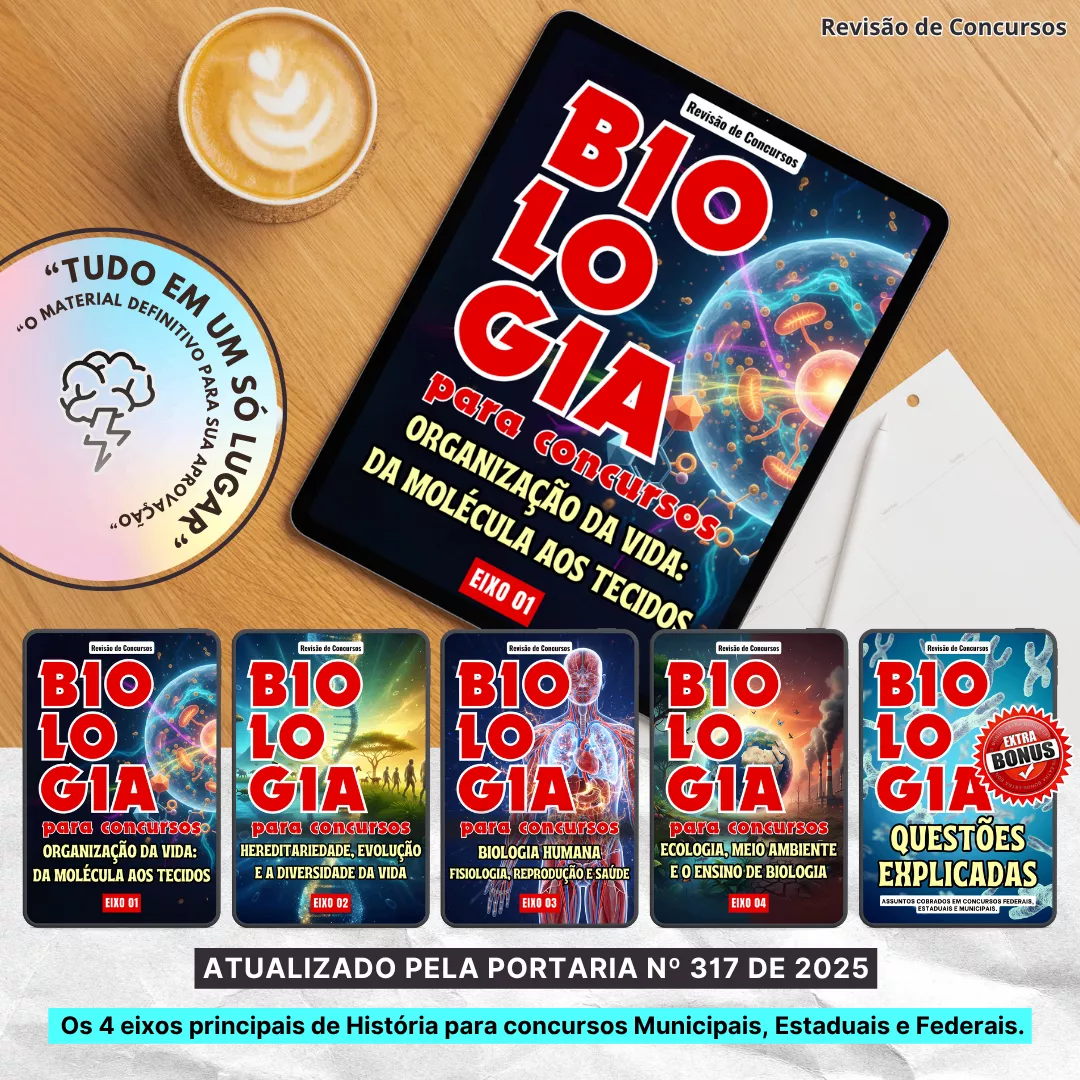 Cuidadosamente elaborados para ajudar você a revisar de forma eficiente e focada no conteúdo exigido na sua prova de Concurso Públicos, Vestibulares e Exame Nacional do Ensino Médio (ENEM).